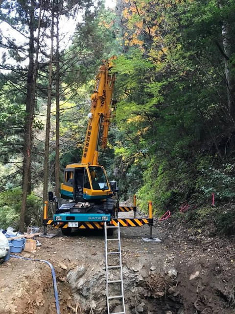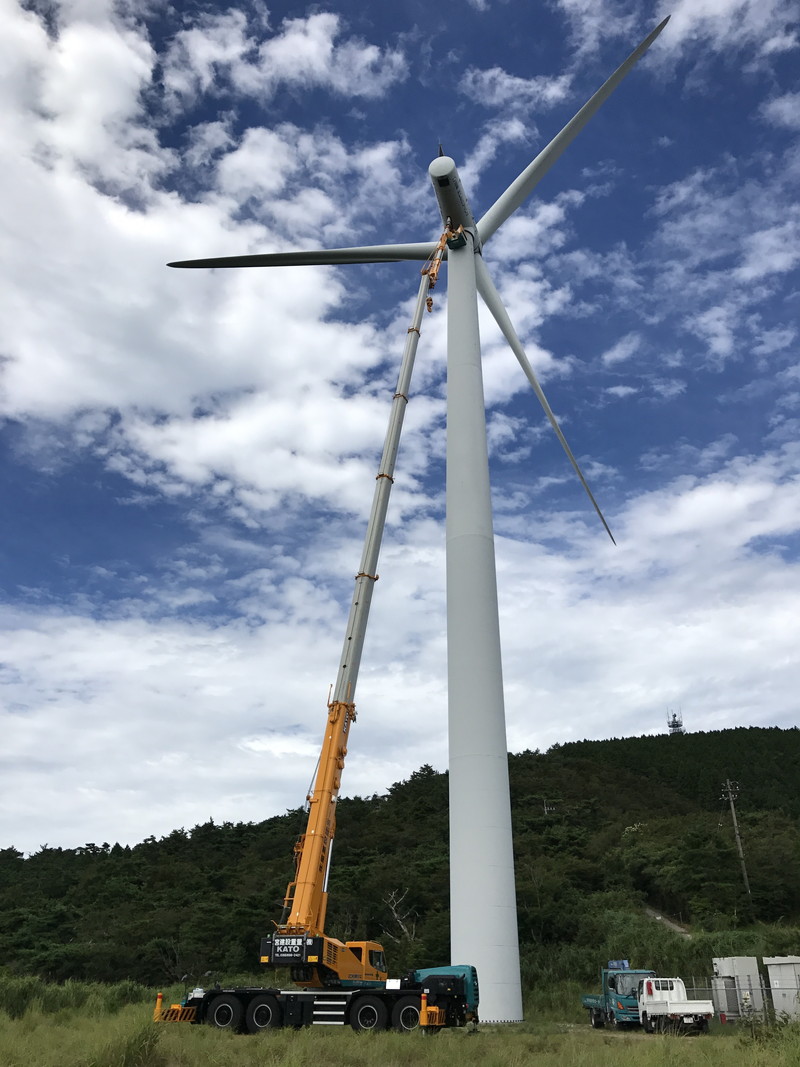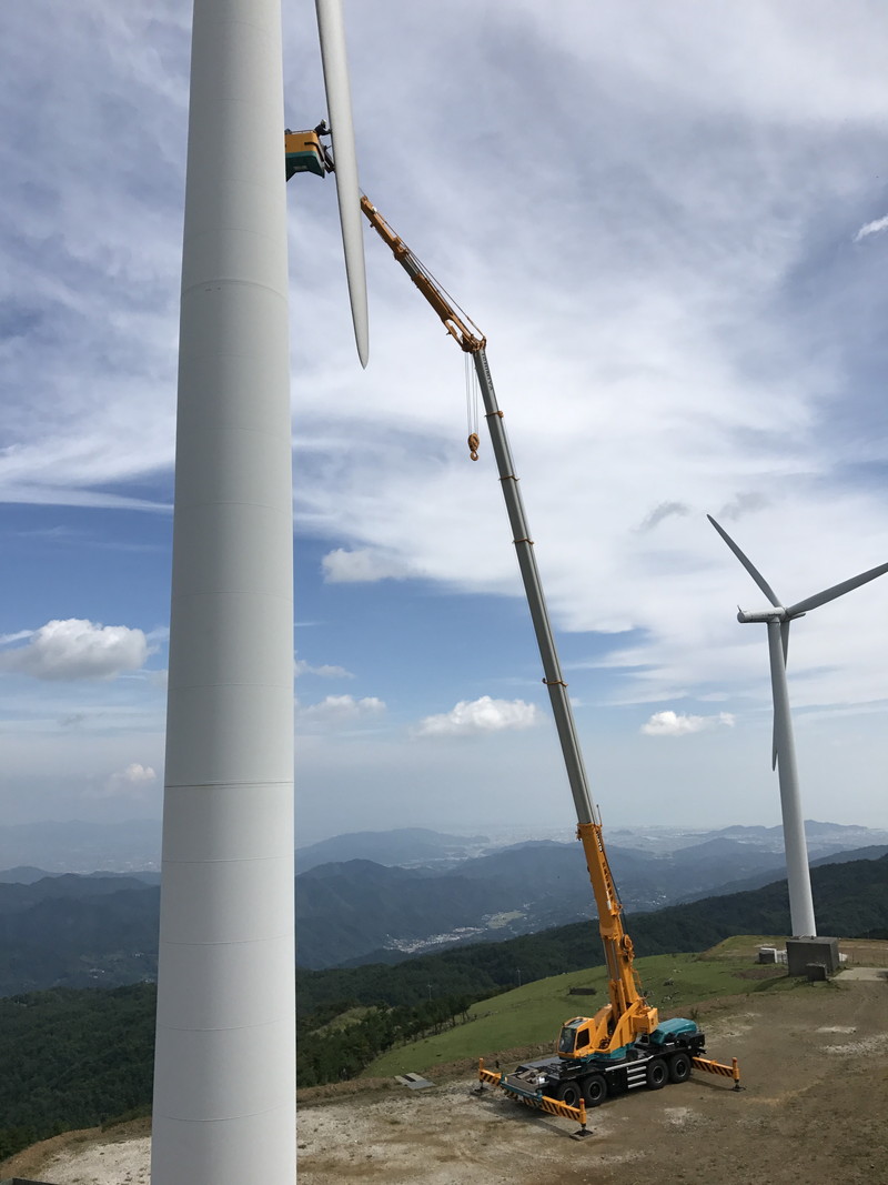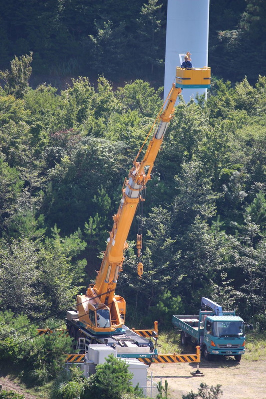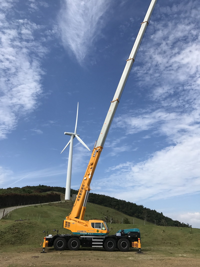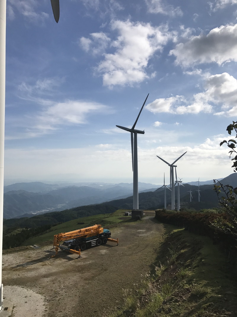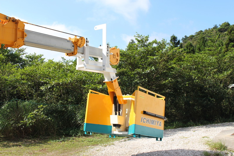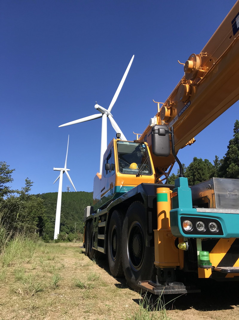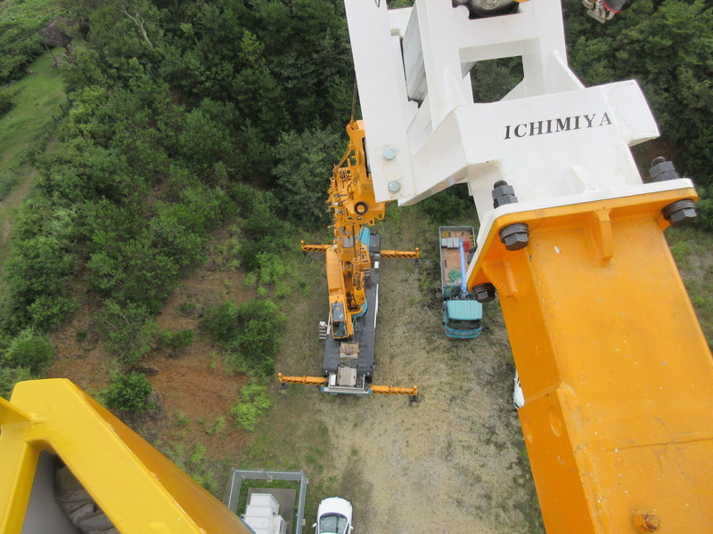 佐那河内村の大河原に位置する場所で、風力発電の作業に使用されます。 作業員はこれをクレーンの先端に取り付け、乗り込みます。 許容収容人数は2〜3人です。風力発電の点検は、めいっぱい高く伸ばした80トンクレーンの先端で行われます。 その高さは実に62mに達します。
